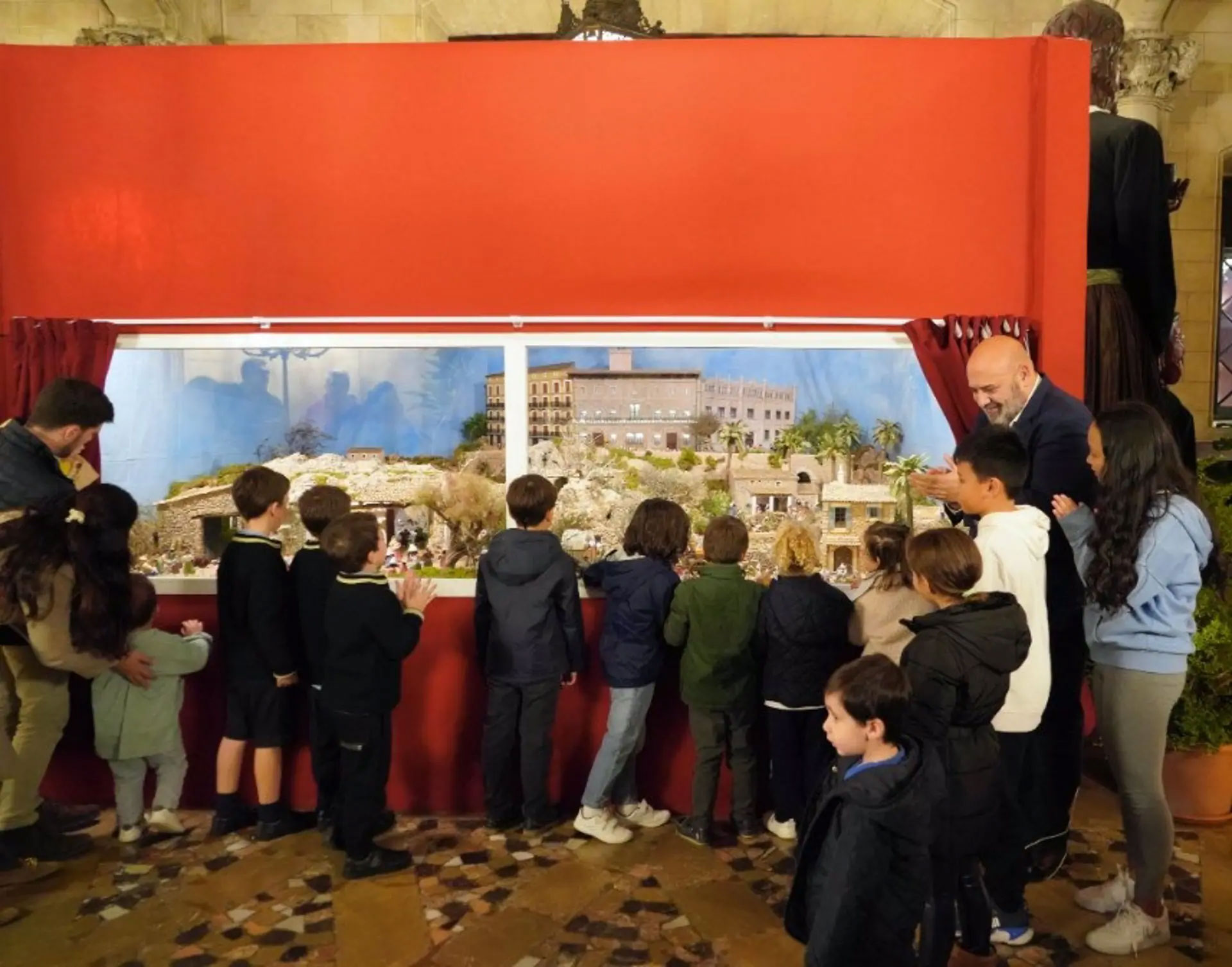 L'alcalde de Palma, Jaime Martínez, i la regidora de Participació Ciutadana, Lourdes Roca, han assistit a l'acte al costat de l'associació de Betlemistes de Mallorca, encarregats d'instal·lar el pessebre.