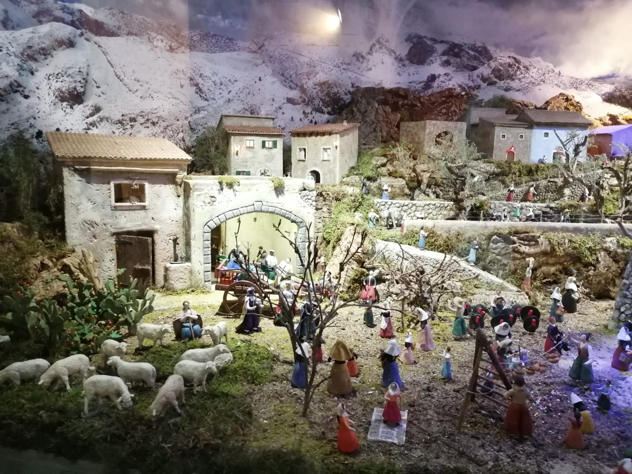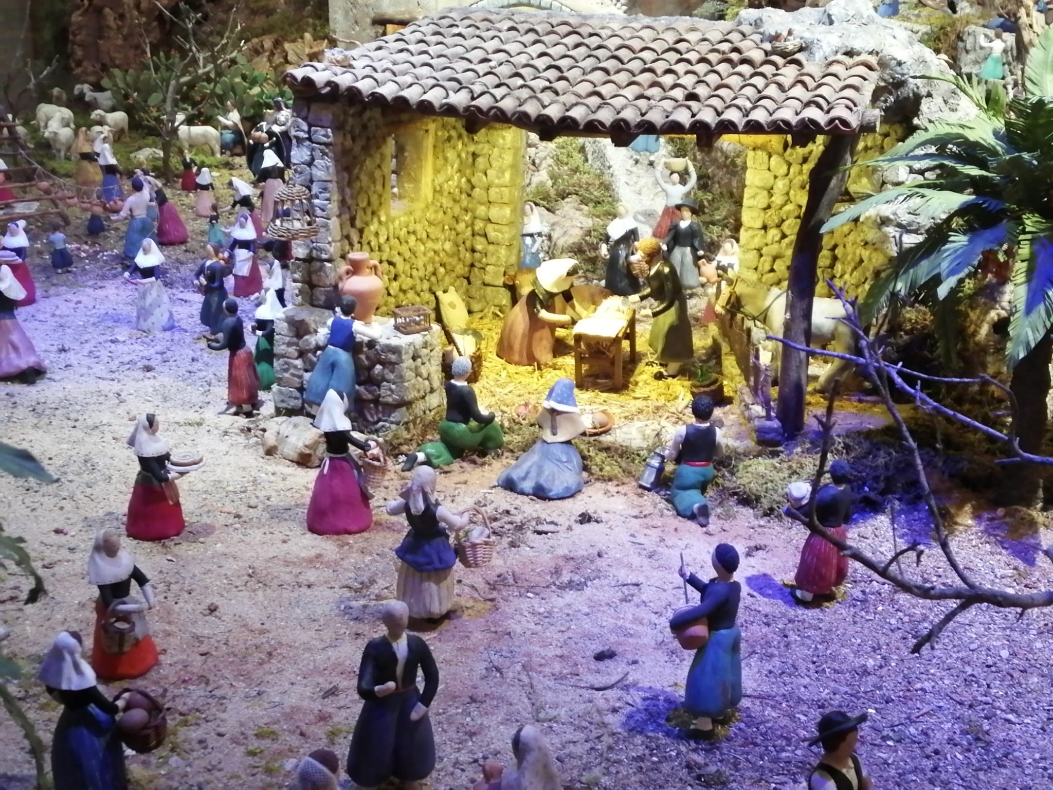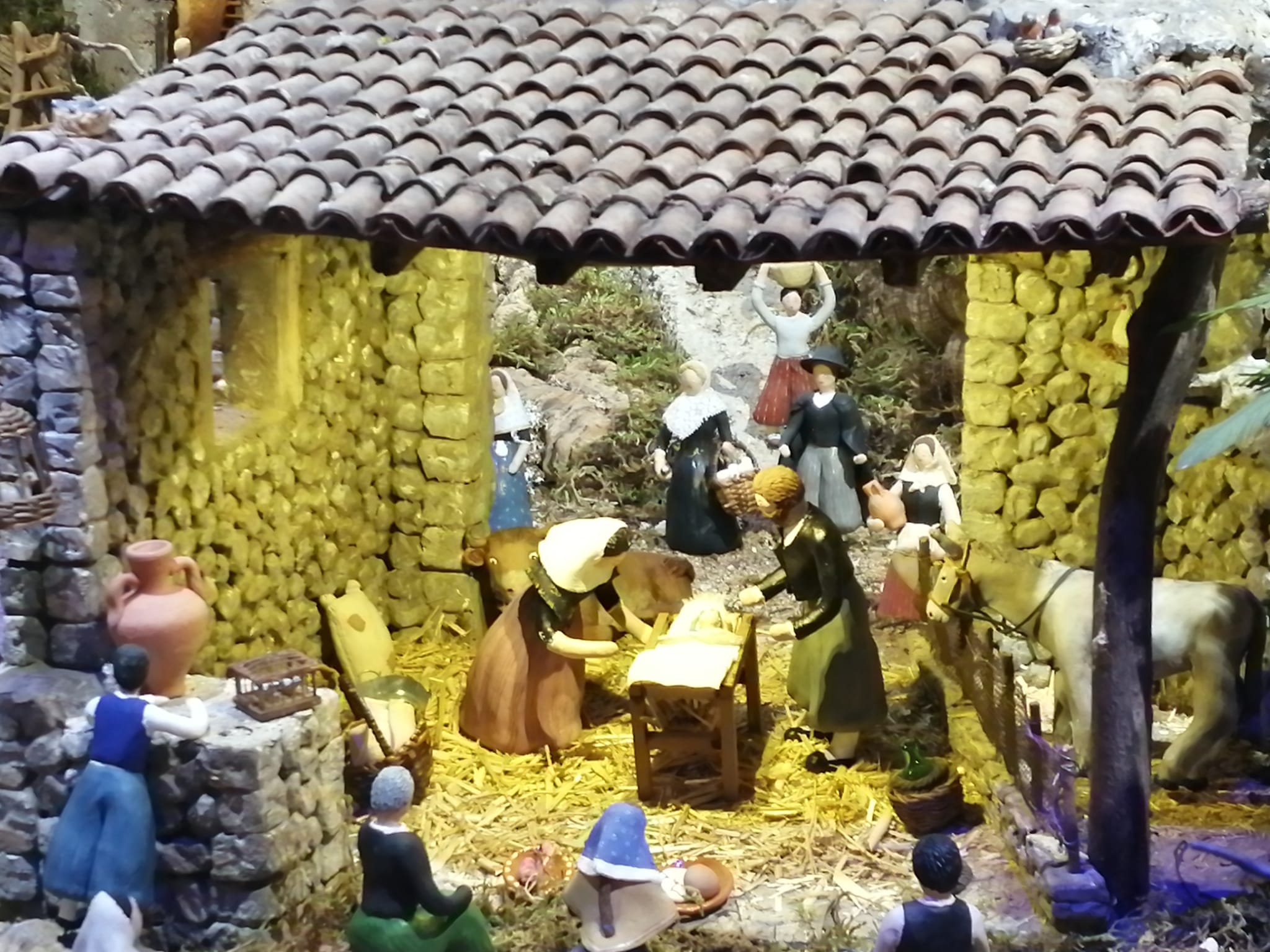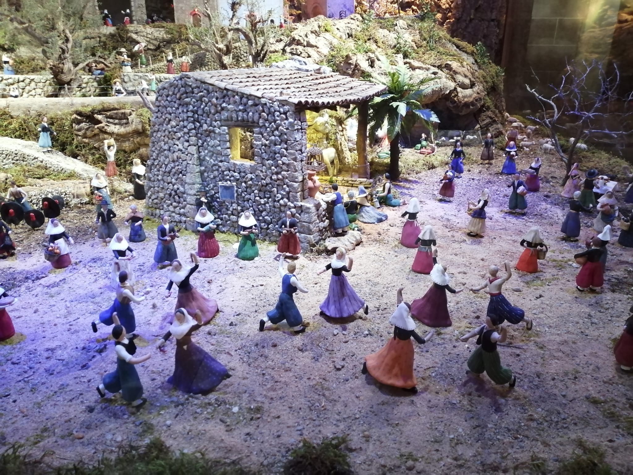 Belén popular inspirado en el paisaje de Mallorca con figuras mallorquinas de barro realizadas por Margalida Nico,lau